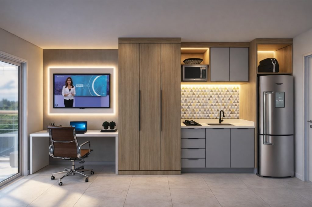 Criamos móveis planejados sob medida para studios, apartamentos e residências que precisam unir estética, funcionalidade e durabilidade.